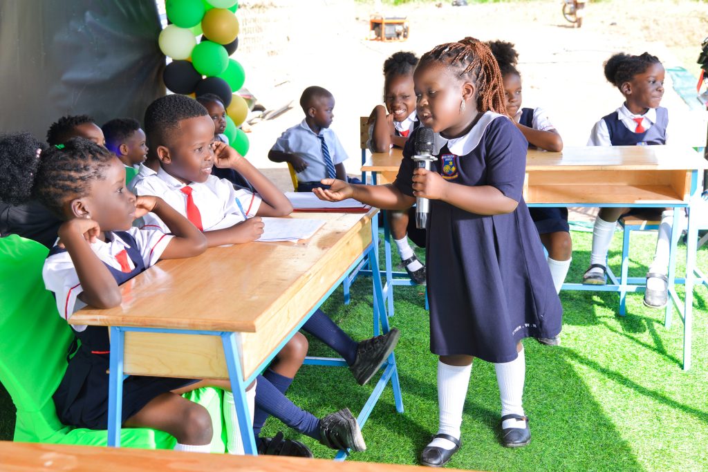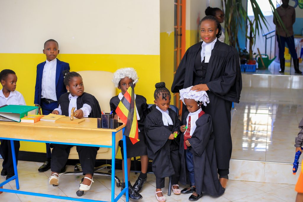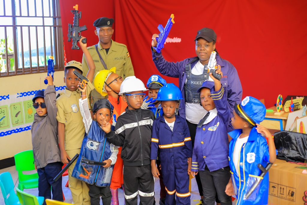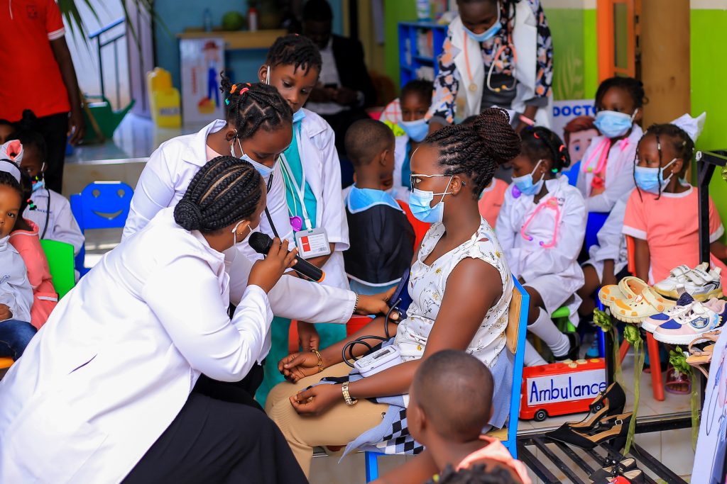 Parents demonstrate some of the key roles of a nurse during the school career day.